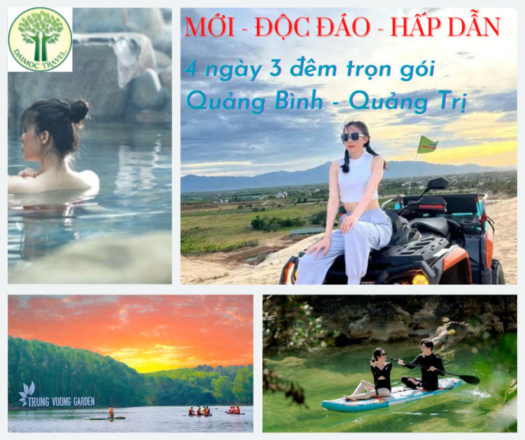 Khi nhắc đến miền Trung nắng gió không thể không nhắc đến Quảng Trị. Đó là vùng đất linh thiêng, với vẻ đẹp hoang sơ và hùng vỹ. Tham quan Quảng Trị là hành trình khám phá thiên nhiên, tìm hiểu văn hóa và lắng nghe lịch sử.  Hành trình này sẽ giúp quý khách đến những điểm mới lạ độc đáo của Quảng Trị. Đó là Khe Nước Lạnh, địa điểm mới với vẻ đẹp độc đáo của cảnh quan với sự pha trộn màu sắc của thiên nhiên của núi rừng hùng vỹ làm cho du khách không khỏi ấn tượng và thích thú. Các hoạt động ở đây giúp bạn tươi mát tâm hồn, nạp năng lượng. Ngoài ra du khách còn được trải nghiệm khu du lịch Trưng Vương Garden, là nơi hội tụ các yếu tố tham quan, giải trí, giáo dục trải nghiệm và nghỉ dưỡng dành cho các gia đình, trường học và công ty. Đến với Trưng Vương Garden, du khách sẽ được checkin với nhiều địa điểm độc đáo trong khuôn viên như Vườn cây nhiệt đới, Vườn Chim Aviary, Sở thú Ăn chay, Thác nước Apsara, Biểu tượng kiến trúc nhà tre và còn nhiều trải nghiệm khác đang chờ đón…Kết hợp với các điểm tìm hiểu văn hóa lịch sử như thành cổ Quảng Trị, cầu Hiền Lương, sông Bến Hải. Quý đoàn được lắng nghe các câu chuyện lịch sử, quá khứ bi hùng của ông cha ta. Để rồi từ đó chúng ta yêu đời hơn và trân quý những gì có được ở hiện tại….